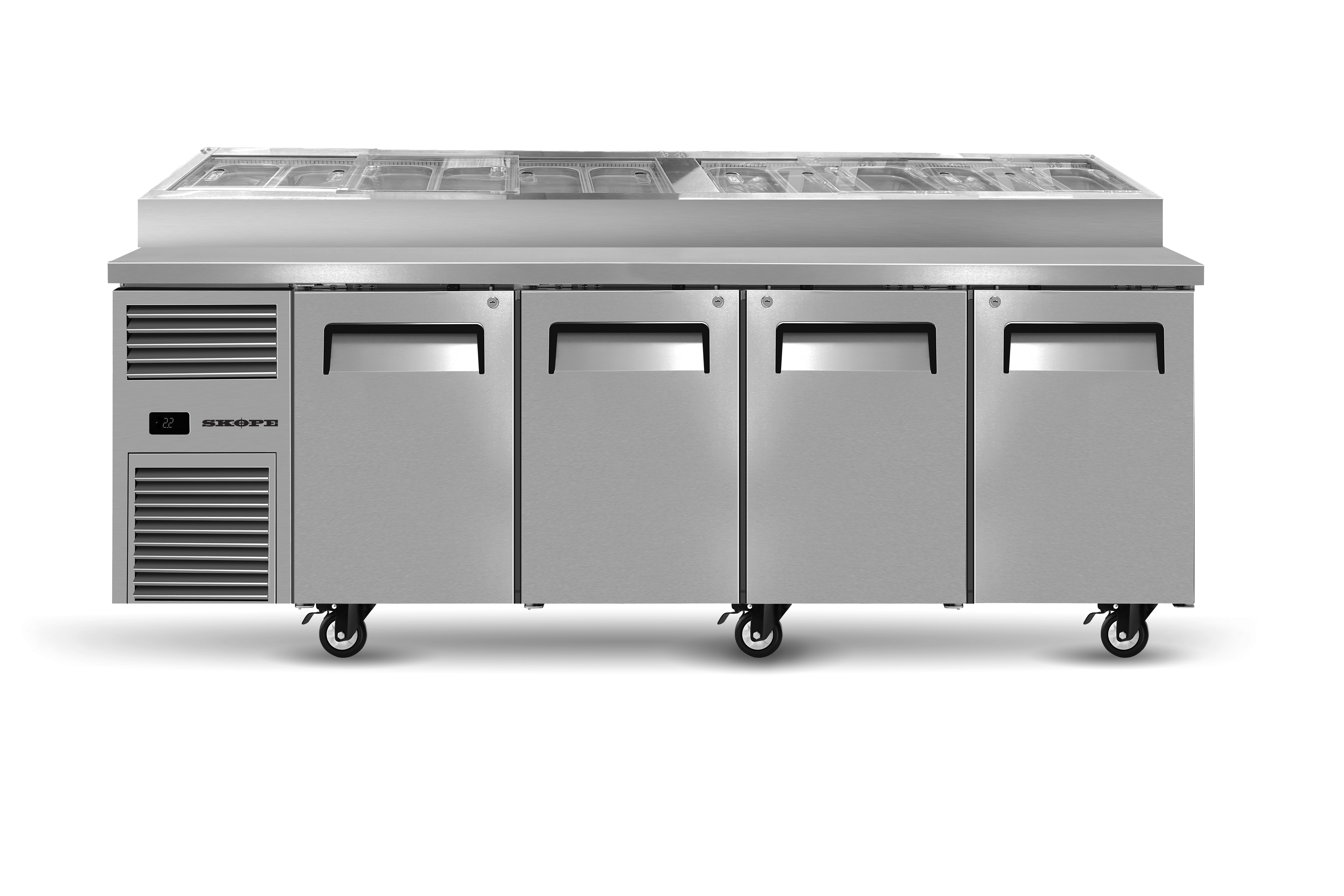 Award-winning ReFlex technology brings unbeatable food safety value to sandwich and pizza preparation with this four solid-door, gastronorm prep station. A food-grade 304 stainless steel body and SKOPE-connect help protect internal food safety, while new features like fan-forced ducted airflow offer greater food safety protection across the benchtop.